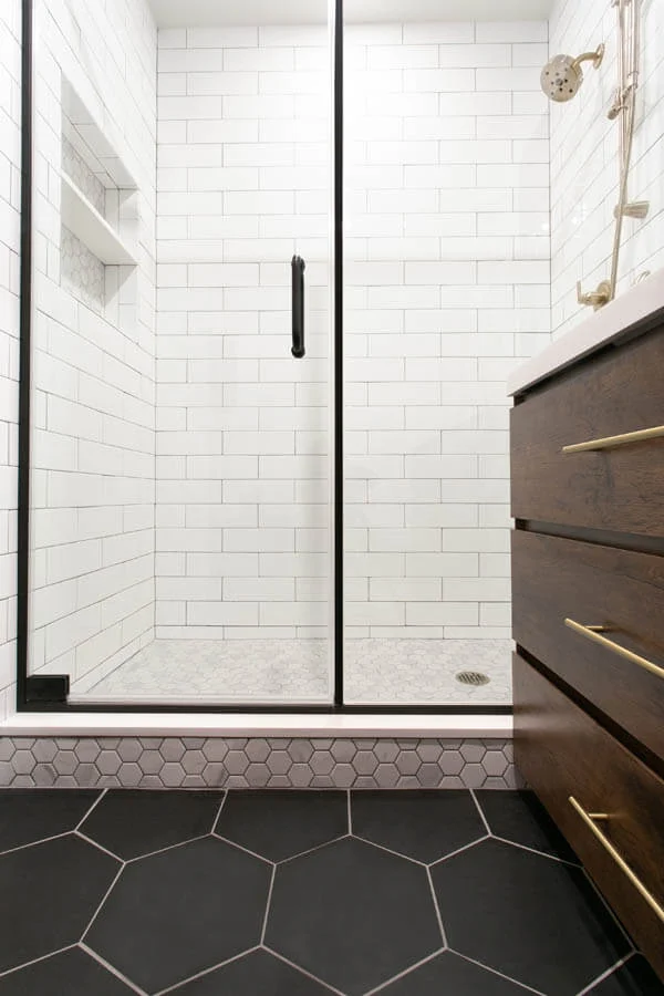 This small bathroom got the facelift of a lifetime, from a non-descript developer fit out to a tailored and elegant space, which plays with shape and texture while keeping a simple and refined palette.
