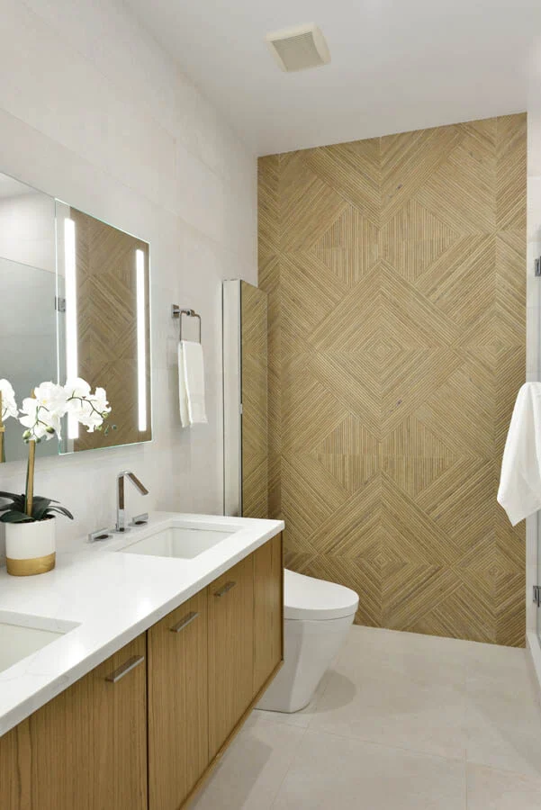 Scope: These two bathrooms were completely remodeled, with tiles that represented a multitude of different textures and styles, molded into cohesion by our design team.