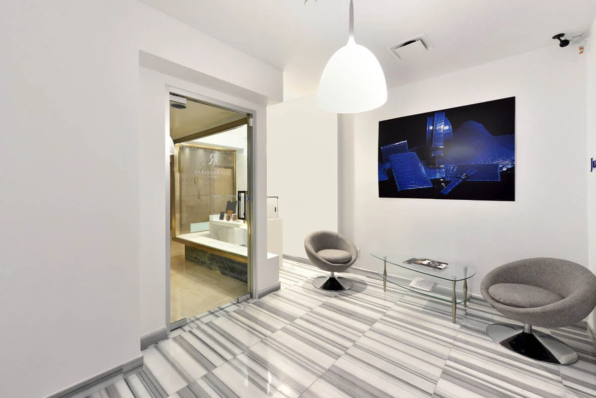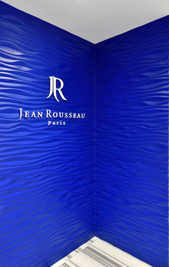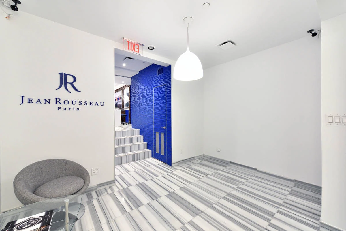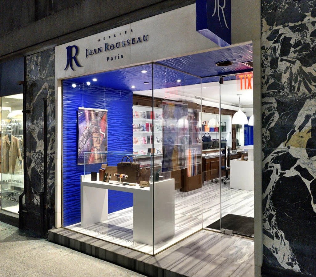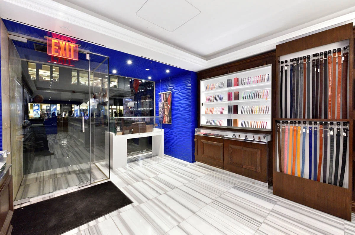 This commercial space was tailored specifically for the client to showcase their line of accessories. Brilliant blues and textured finishes make it a tactile and bold space.